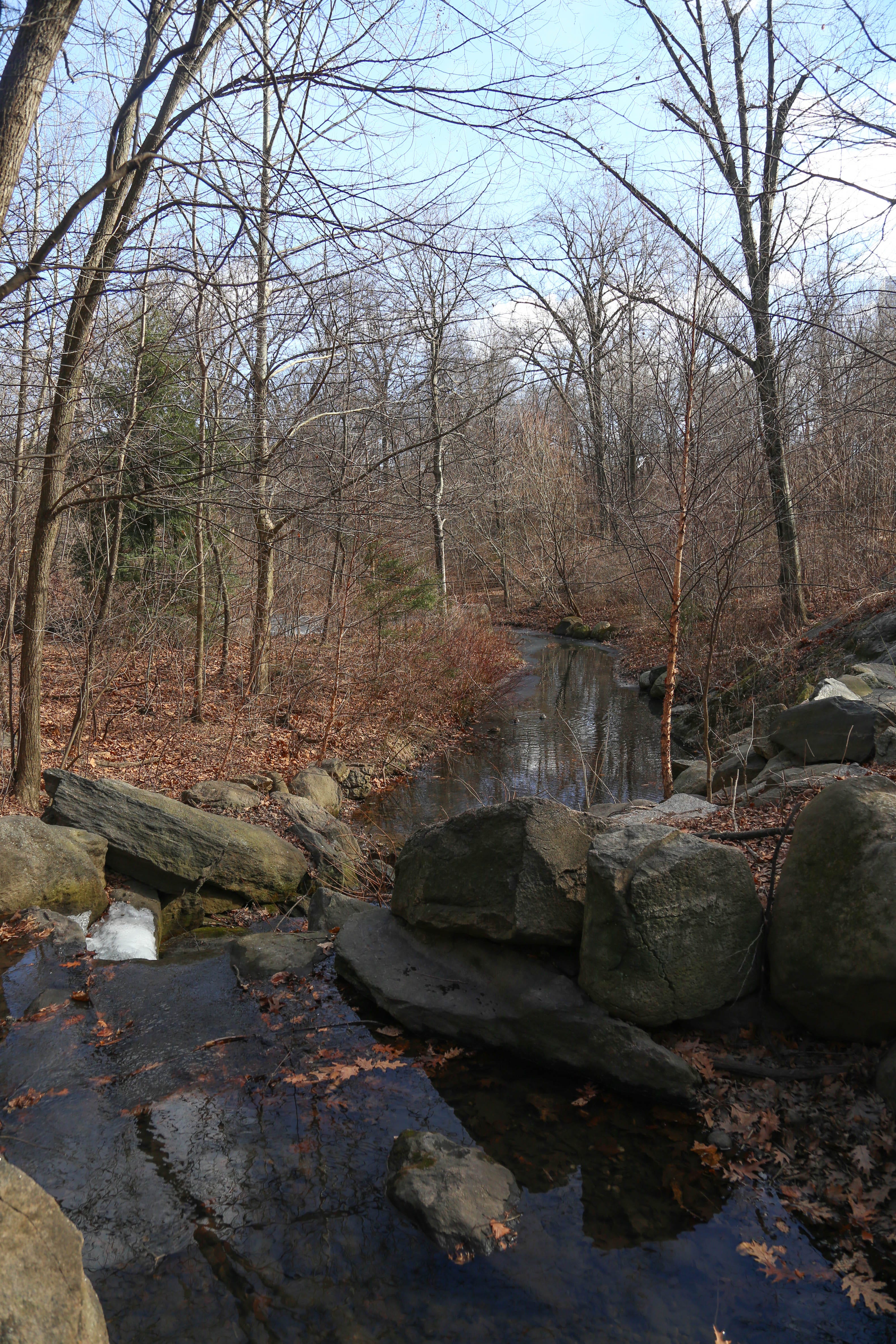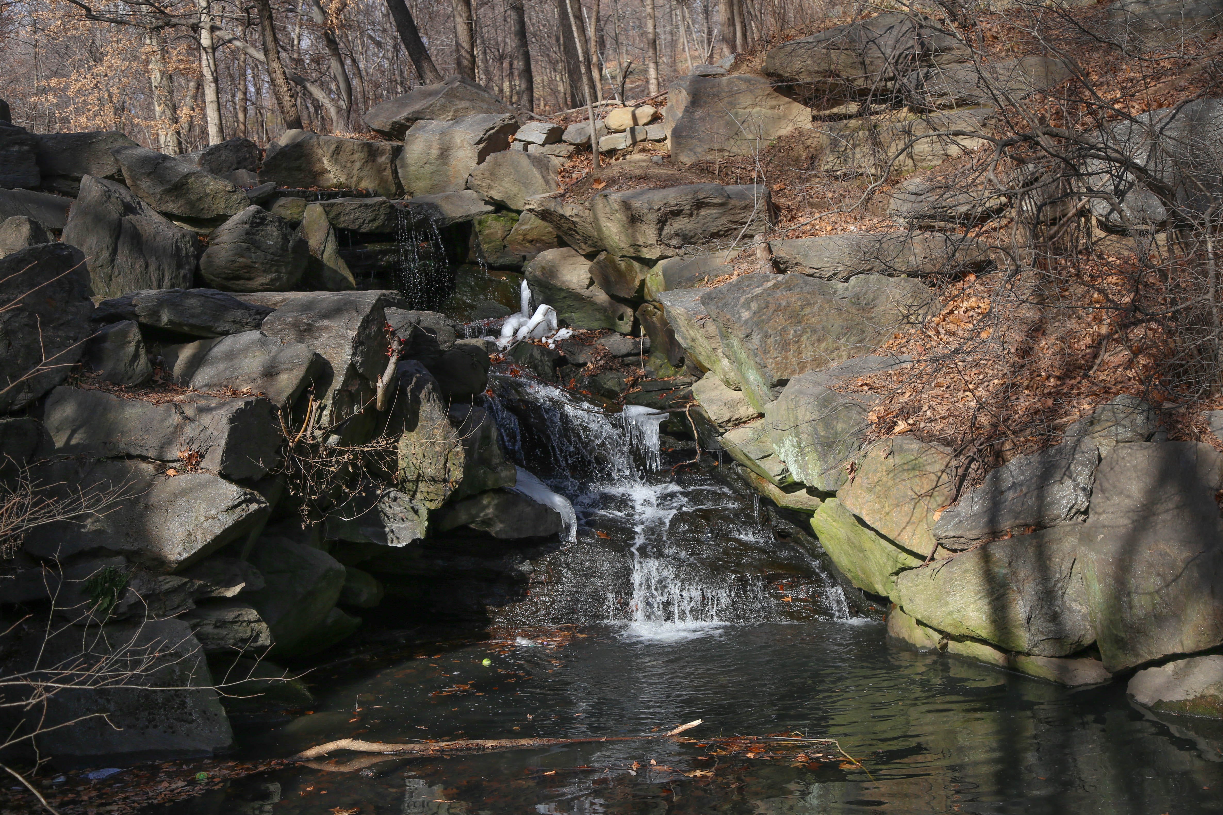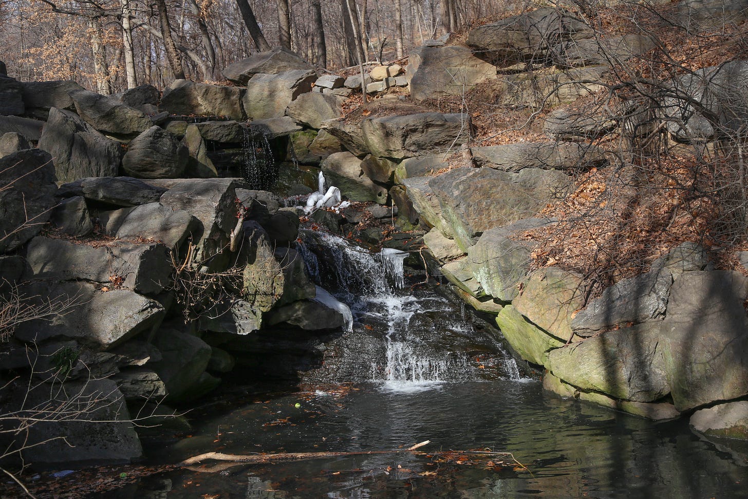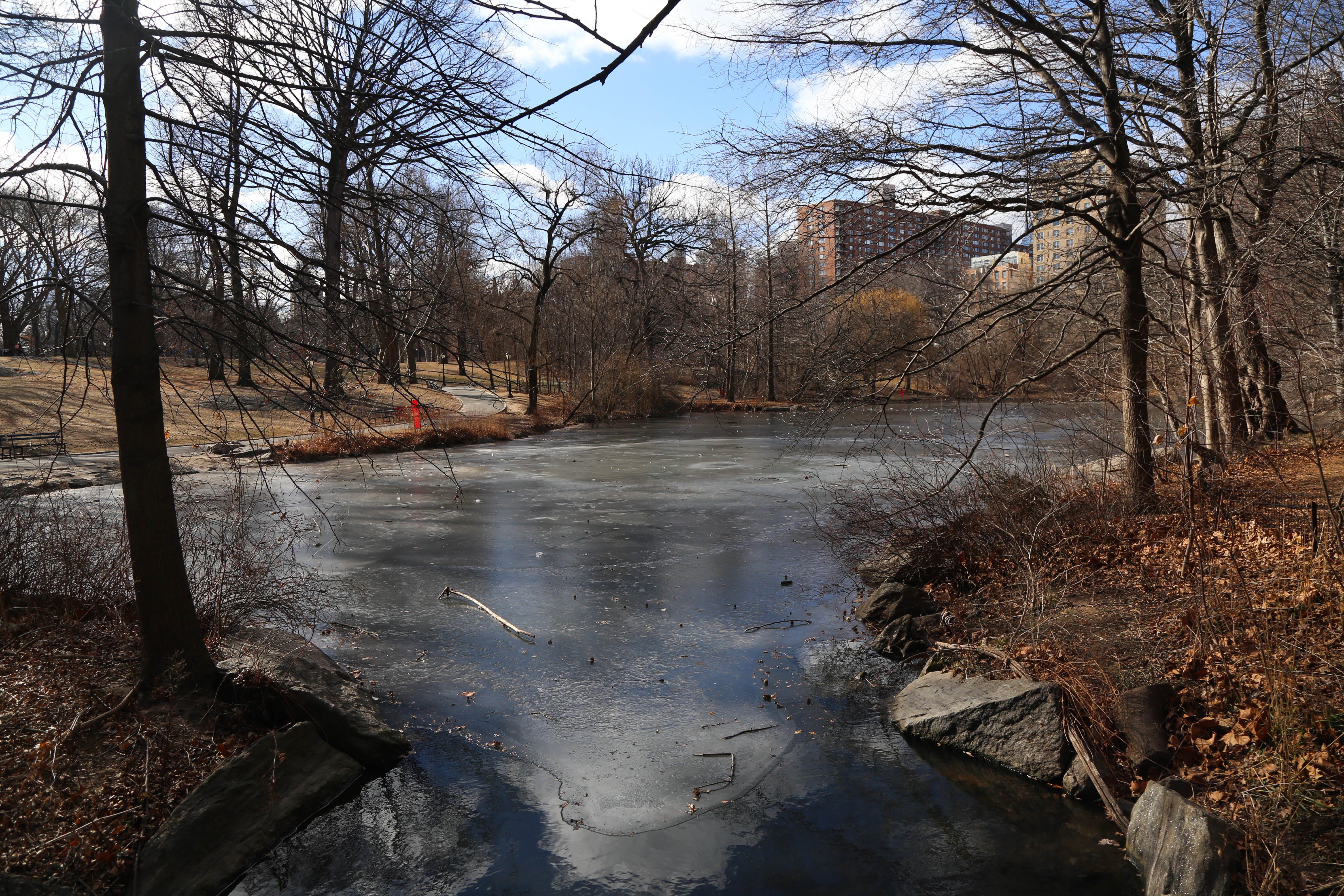 It’s cold in New York City today. Temps are in the mid to upper 20s, and the wind gusts make it feel even colder. I head to Central Park anyway because it’s a sunny day, and there are so few of those during the long winters on the east coast. I enter the park on the east side of 96th and head west. I’m headed to Central Park’s largest woodlands, the North Woods. I turn north and pass by the ball field now covered by a large flock of Canada Geese. Ascending to West Drive, I can see the Pool from the crest of the hill as I cross the street.