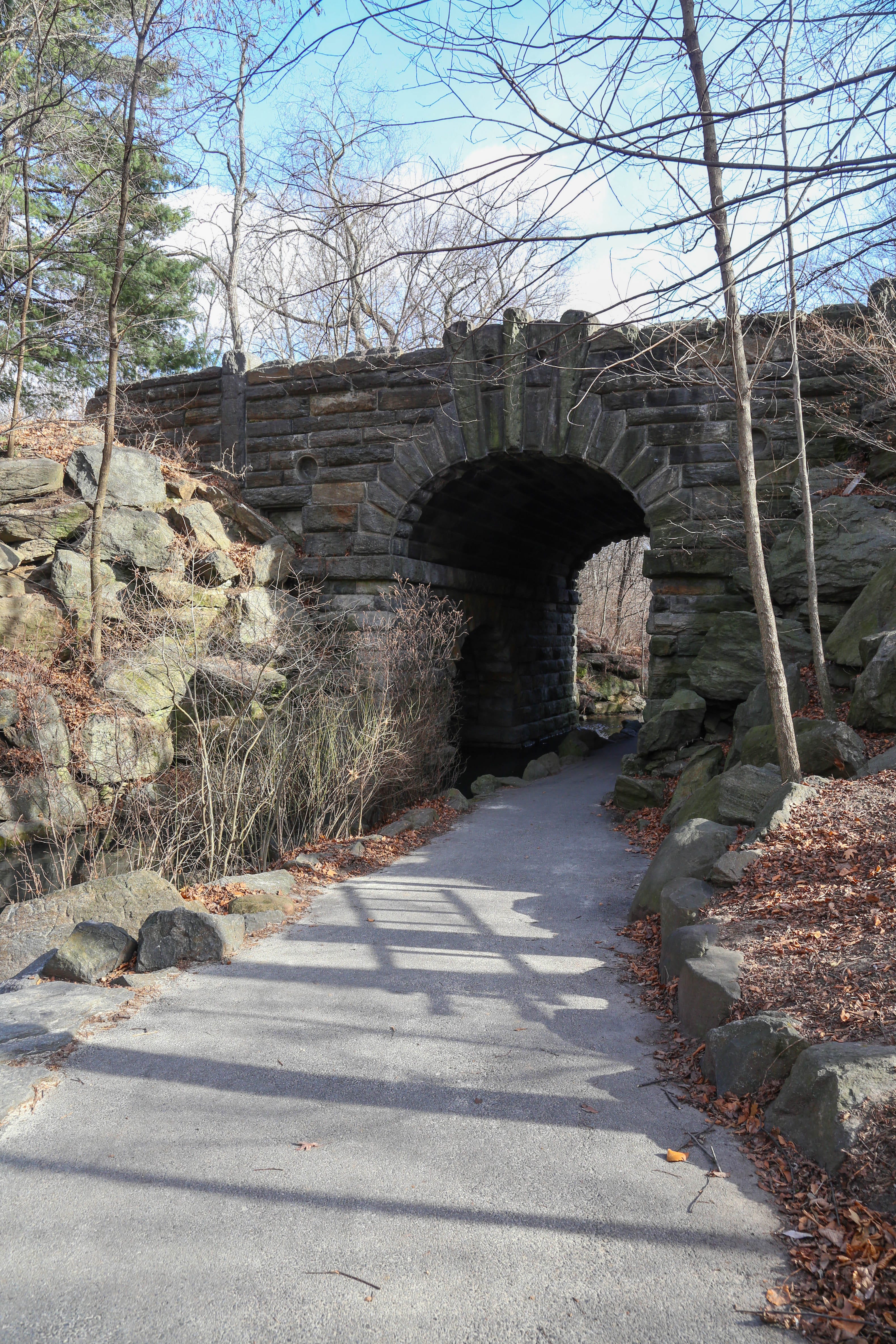 The arch is made of large, rustic stone, and as I walk underneath it, I cross the threshold into a woodland known as the Ravine, entering the North Woods.